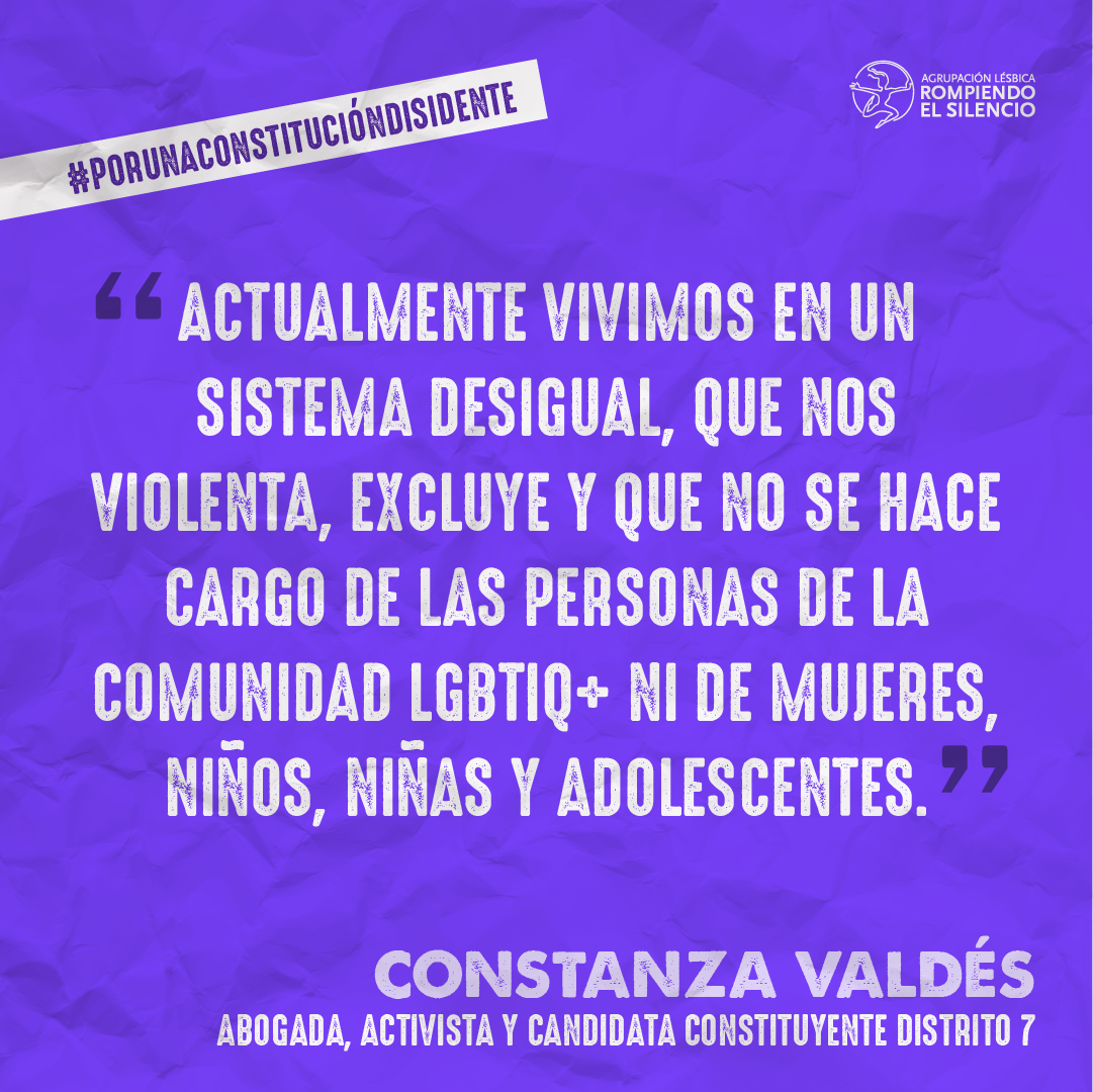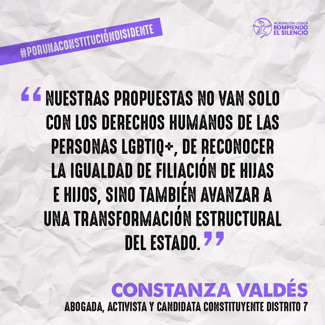 Tener representación también significará darle legitimidad al proceso de redacción. Si no tenemos representación y terminan redactando una Constitución que nos excluye nuevamente, la verdad es que para nosotres esa Constitución no va a tener mucha legitimidad porque nuevamente habrá sido escrita excluyendo a ciertos grupos de la sociedad. La representatividad es relevante para que no se dé algo como lo que se da actualmente en el Congreso, donde hay bancadas autodenominadas de la diversidad pero cuentan solo con personas heterosexuales.